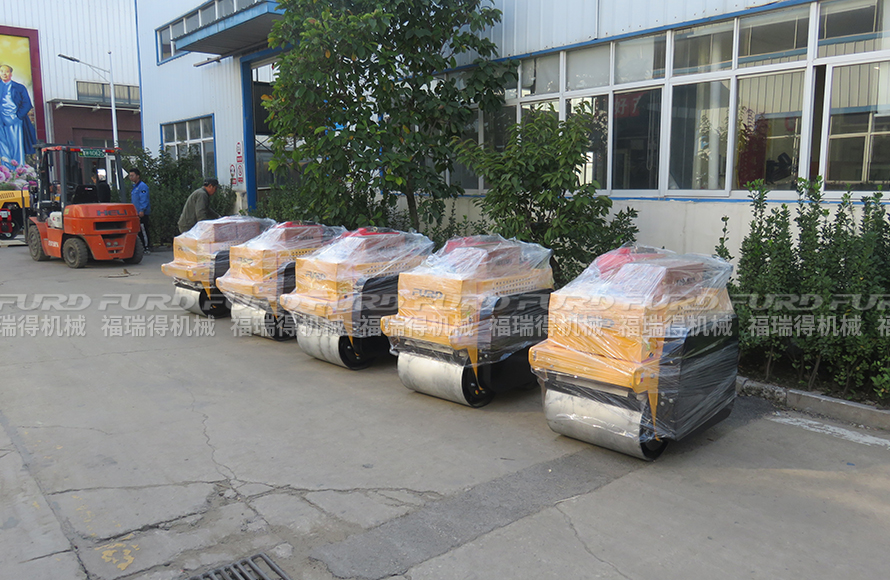 10月18日,福瑞得機械5臺手扶雙輪壓路機和1臺座駕壓路機打包發往青島。福瑞得機械小型壓路機作業半徑小,可在狹小的區域內工作,主要用于溝渠基礎,道路,體育場地的壓實整平,也可用于壓實瀝青表面的作業。
