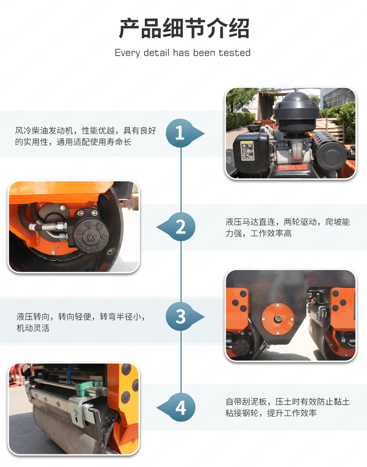 FYL-800是800kg液壓轉向壓路機,采用重型變量柱塞泵,液壓馬達驅動變速行走,電磁離合器振動。
